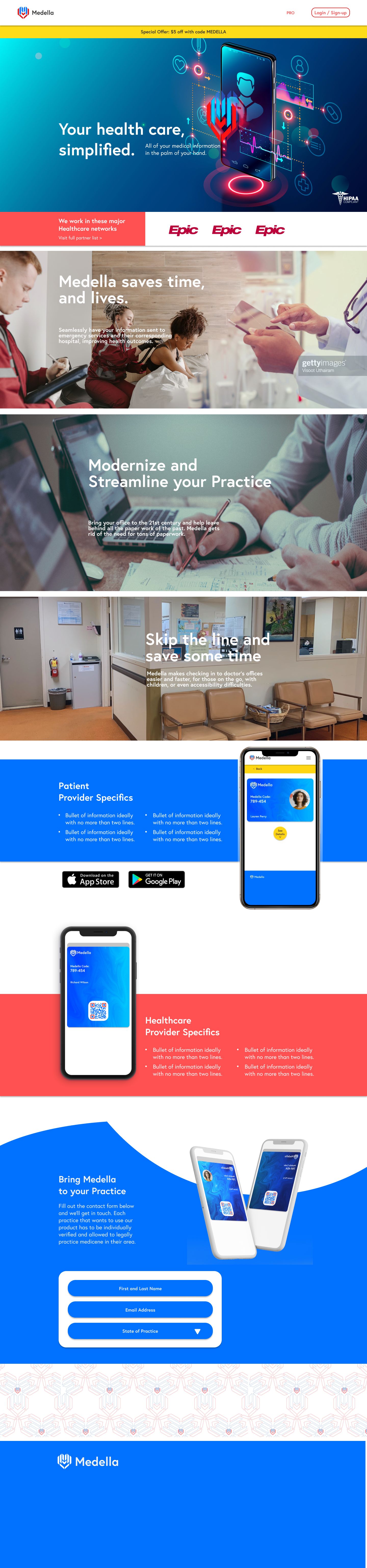 Medella worked with me to help create a brand identity and the core functionality of their application idea to bring to investors. Together we created the Medella Card, a new take on how medical information is stored and shared in our digital age.